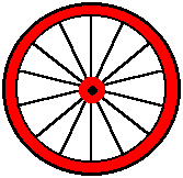 Finally, when you get hooked on spoke counting like I am, here’s a little tip which will save you time. Only count half way round. Now you may think this is obvious; when you’ve counted half way round and you’ve got up to 8, you double it making 16 and that’s the number of spokes; wrong! If the halfway round total is 8, it’s a 14 spoke wheel. This is because all cart wheels have an even numbers of spokes so there is always a spoke diametrically opposite a spoke. If you start at the top, for example, and you count round to the opposite spoke at the bottom, you will have counted half the number of spokes plus one. Don’t believe me? Try counting the one below, and you will see that I’m right. So, the half way round counting rule is as follows: 7 is a 12 spoke wheel, 8 is a 14 spoke wheel and 9 is a 16 spoke wheel. Happy counting! Phil Stephens